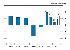 1. The numbers in this report are based on the Bureau of Economic Analysis's (BEA) advance estimate of fourth-quarter GDP, which was released on January 27, 2012. The BEA will release a revised estimate on February 29, 2012. Return to text
