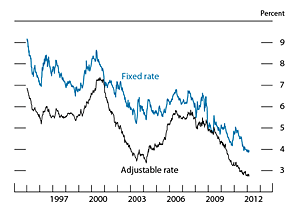 Note: The data, which are weekly and extend through February 22, 2012, are contract rates on 30-year mortgages.