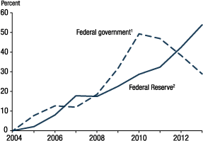 Figure 3. Cumulative change in Federal Reserve System expenses and federal government expenses, 2004-13