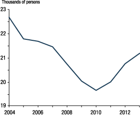 Figure 4. Employment in the Federal Reserve System, 2004-13