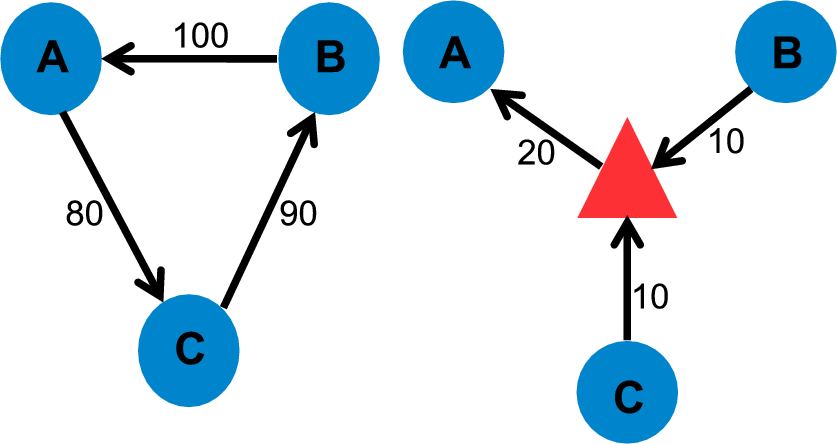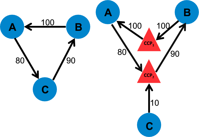 Central clearing, if it covers a sufficient amount of derivatives trade and is conducted at sufficiently few CCPs, also lowers average counterparty risk through the effect of netting, as illustrated in Figures 7 and 8, and as modeled by Duffie and Zhu (2011).12