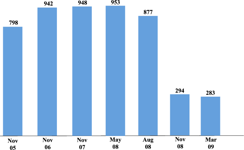 Figure 11 shows data collected by Singh and Aitken (2009) on the amounts of securities pledged to Morgan Stanley, during the reporting periods surrounding the failure of Lehman, that Morgan Stanley was able to pledge to others.20 The sudden drop in repledgeable assets shortly after the failure of Lehman represents a substantial run of Morgan Stanley's prime brokerage clients. A failure of Morgan Stanley would have left the hedge funds that had not run with a claim against their assets, but no guarantee of quick or complete return of the assets.