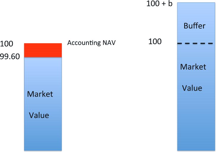 As illustrated in Figure 5, the Squam Lake Group (2011) recommended that money market funds be required to have their shares marked to market, or alternatively that money market funds have loss buffers of some form, such as third-party insurance or over-collateralization.10 The SEC is preparing a recommendation for further regulation of money market funds.