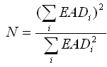 (6) Effective number of exposures (N). (i) Unless the [bank] elects to use the formula provided in paragraph (f), Accessible version of formulaFormula, where EADi represents the EAD associated with the ith instrument in the pool of underlying exposures.