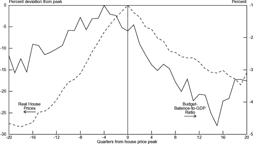 Chart 3.10: Budget-Balance-to-GDP Ratio and Real House Prices (Median over Peaks)