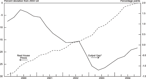 * Output gaps are estimates from the OECD Economic Outlook, December 2004. Output gaps are expressed as the percentage that actual output is greater (positive gap) or less (negative gap) than its potential level.