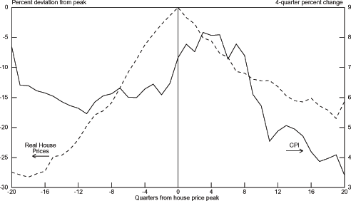 Chart 3.2: CPI Inflation and Real House Prices (Median over All Peaks)