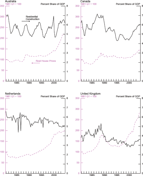 In a few previous episodes, significant declines in nominal asset prices were associated with a rise in nonperforming loans and weakened bank balance sheets. However, residential mortgages generally have been low risk, and even though some lending institutions have substantial exposures, it is unlikely that residential mortgage lending poses a significant threat to banking systems in these countries. Households and residential construction companies also are exposed to the risk of interest rate increases and house price corrections, and they may be less prepared for an economic downturn. In those countries where the run-up in house prices appears to be most advanced--the Netherlands, Australia, and the United Kingdom--these risks seem to have been manageable thus far, but the adjustment process is still unfolding.