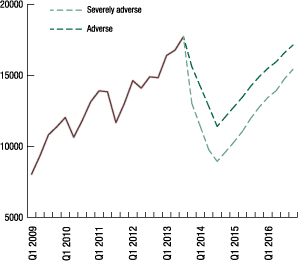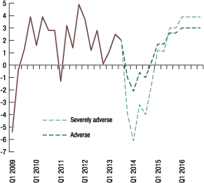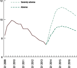 15. See Board of Governors of the Federal Reserve System (2013), "2014 Supervisory Scenarios for Annual Stress Tests Required under the Dodd-Frank Act Stress Testing Rules and the Capital Plan Rule" (Washington: Board of Governors, November 1), www.federalreserve.gov/newsevents/press/bcreg/20131101a.htm for additional information and for the details of the supervisory scenarios. Return to text