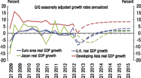 Figure 6. Real GDP growth in four country/country block areas in the severely adverse scenario, Q1 2009-Q4 2015
