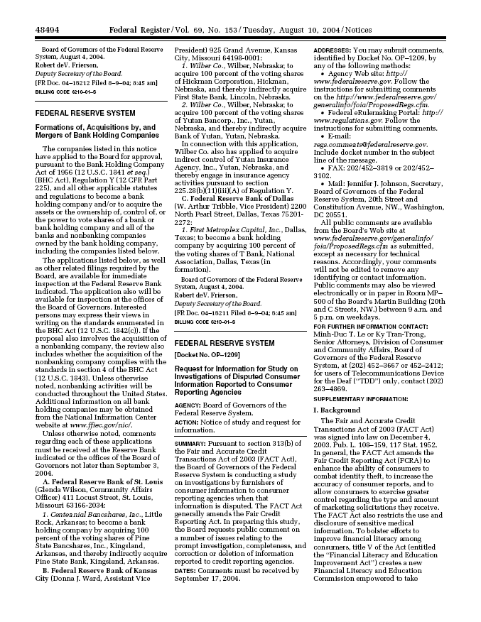 Federal Trade CommissionBoard of Governors of the Federal Reserve System