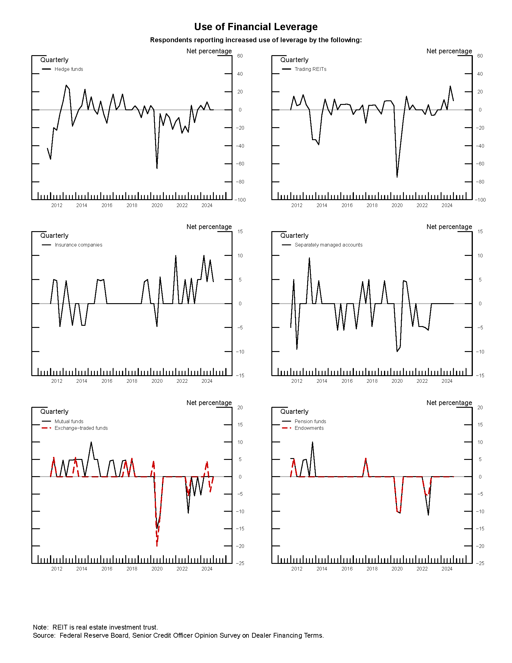With respect to clients' use of financial leverage, dealers reported that the use of leverage remained basically unchanged for all client types.
