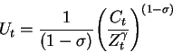 where Z is the habit-formation reference consumption level, defined as