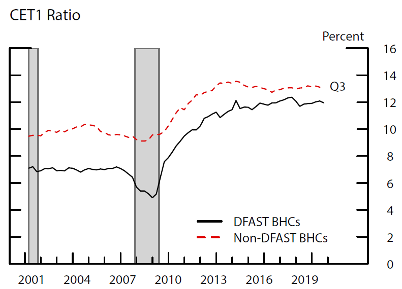 Note: DFAST group is defined as the 33 BHCs from the 2018 exercise. Shaded areas are NBER recessions.