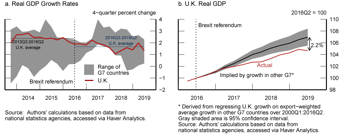 We document that U.K. GDP growth has slowed since the referendum and has also underperformed in comparison to other G7 countries. This slowdown can be mainly attributed to a slowdown in investment growth, while the decline in consumption growth has been more muted. We find that the rise in EPU since 2016 accounts for a decline in the level of U.K. GDP of about 2.1 percent over the three years following the referendum. Our industry-level analysis suggests a significant negative relationship between investment growth in U.K. industries and the export exposure of these industries to the EU, while the exposure through workforce appears to have had no significant impact on firms' investment decisions since the referendum. That said, industries with a higher pre-referendum proportion of EU nationals in their workforce reduced their employment growth the most.