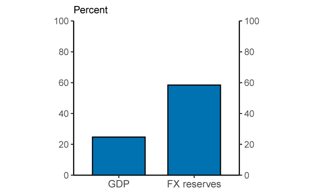 13. This is especially true for China, which holds a lot of U.S. dollar reserves and cannot use the Chinese renminbi as a reserve currency. Return to text