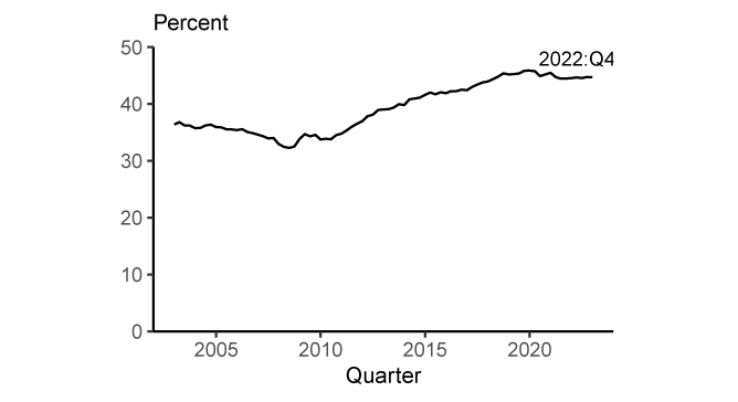 Note: The exact amount of U.S. dollar banknotes held by foreigners is not known and this is most likely a conservative estimate; see Judson (2017). Data are quarterly and extend from 2002-Q4 through 2022-Q4.