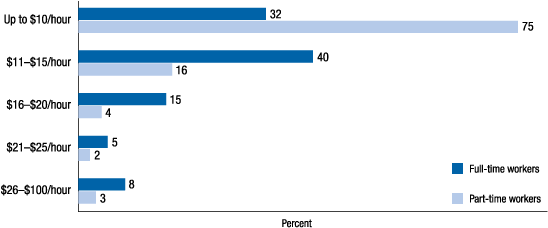 Figure 14. Full-time workers are more likely to earn higher hourly wages than part-time workers
