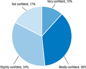 A number of respondents also indicate that they lack confidence in their ability to manage their investments. Just over half of respondents with self-directed retirement accounts (including 401(k), IRA, and savings outside retirement accounts) are either "not confident" or only "slightly confident" in their ability to make the right investment decisions when investing money in these accounts (figure 22).