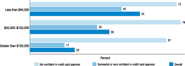 The potential for hardship from volatile incomes and expenses appears to be greatest among lower-income respondents and among credit-constrained respondents. Among those with volatile incomes or expenses whose family income is under $40,000 per year, 54 percent report that they struggled to pay their bills due to this volatility. Among lower-income respondents who are not confident that they would be approved for a credit card if they were to apply for one, an even higher 72 percent report that they struggled to pay their bills due to income or expense fluctuations (figure 9).