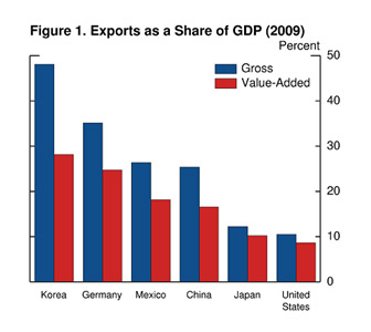 As global production sharing expands, gross trade flows provide an increasingly misleading picture of the economic importance of trade. Traditional statistics measure trade on a gross basis, that is, the total value of shipments into and out of a country. U.S. gross exports, for example, include both the domestic value-added and the value of the imported intermediates used in the production process.