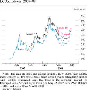 Commercial and industrial (C&I) loans at banks expanded briskly in the first quarter and then slowed markedly in the second quarter. In the Senior Loan Officer Opinion Survey taken in January and April, considerable net fractions of banks reported that they had tightened credit standards and boosted spreads on C&I loans. According to the respondent banks, the move to a more stringent lending posture mainly reflected a less favorable or more uncertain economic outlook and a reduced tolerance for risk; a significant fraction also noted concerns about the capital position of their own bank as a reason for tightening standards. The secondary market for syndicated leveraged loans remained relatively weak, but loans associated with some prominent buyouts were sold, albeit at a discount.