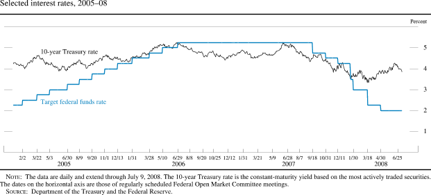 Monetary Policy Report submitted to the Congress on July 15, 2008, pursuant to section 2B of the Federal Reserve ActAfter easing the stance of monetary policy 100 basis points over the second half of 2007, the Federal Open Market Committee (FOMC) lowered the target federal funds rate 225 basis points further in the first half of 2008.11 The Federal Reserve also took a number of additional actions to increase liquidity and to improve the functioning of financial markets.