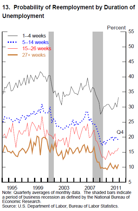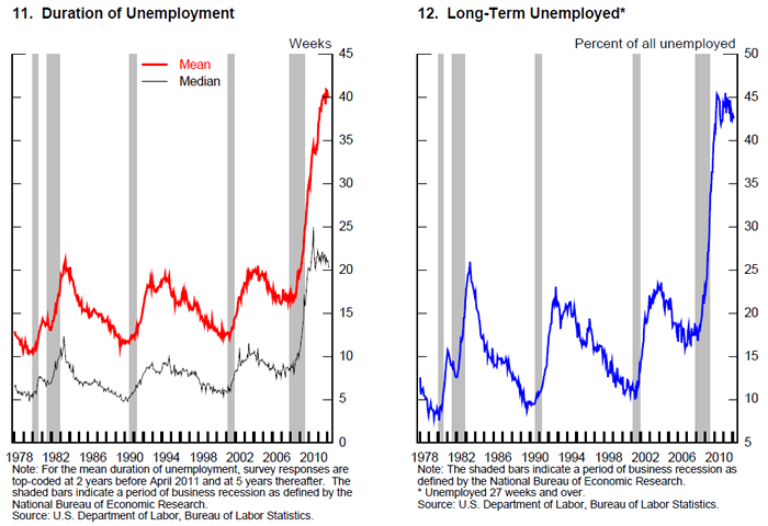 I also discussed long-term unemployment today, arguing that cyclical rather than structural factors are likely the primary source of its substantial increase during the recession. If this assessment is correct, then accommodative policies to support the economic recovery will help address this problem as well. We must watch long-term unemployment especially carefully, however. Even if the primary cause of high long-term unemployment is insufficient aggregate demand, if progress in reducing unemployment is too slow, the long-term unemployed will see their skills and labor force attachment atrophy further, possibly converting a cyclical problem into a structural one.