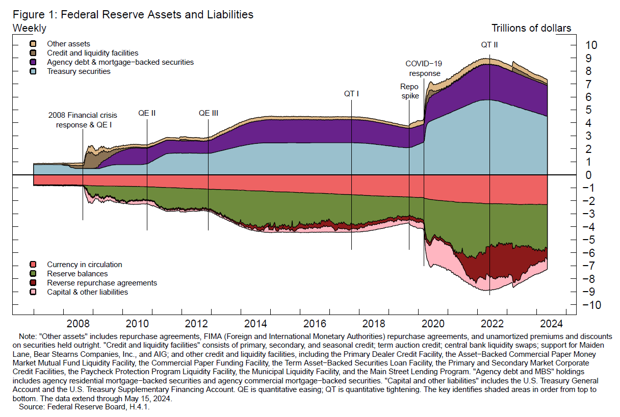 i. Note: On May 29, 2024, figure 1 was updated to correct “Credit and liquidity lacilities” to “Credit and liquidity facilities” in the legend and to correct “QE is quantitative tightening” to “QT is quantitative tightening” in the note. Return to text