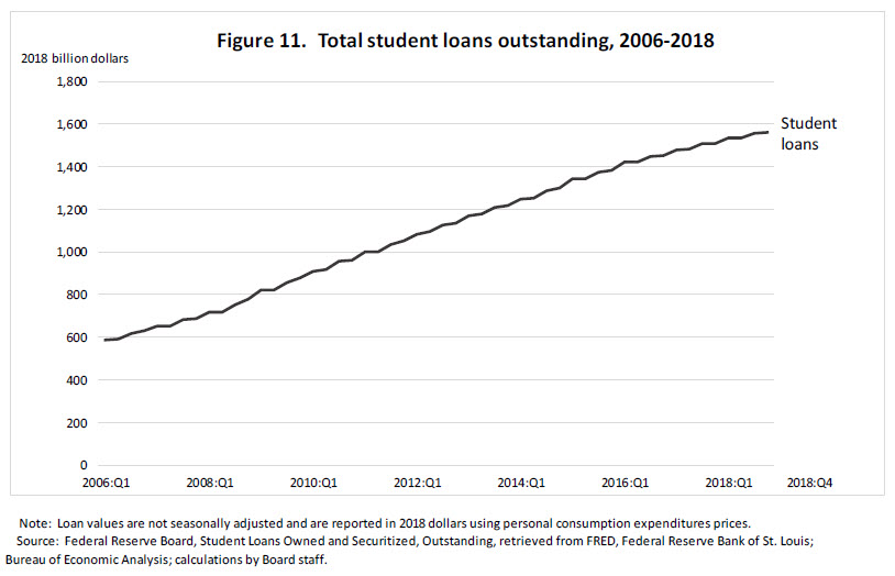 34. The data are from Board of Governors of the Federal Reserve System, Statistical Release G.19, "Consumer Credit." For a comparison of various estimates of student loan debt, see Jesse Bricker, Meta Brown, Simona Hannon, and Karen Pence (2015), "How Much Student Debt Is Out There?" FEDS Notes (Washington: Board of Governors of the Federal Reserve System, August 7). Return to text
