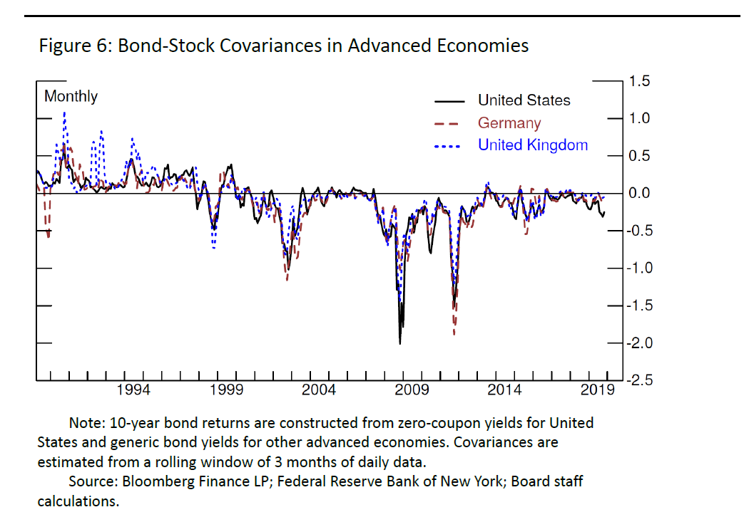 As a concrete example, consider the (ex-post) hedging value of bonds for equity risk in the Global Financial Crisis. In 2008, the total return on the S&P 500 index was around minus 37 percent, while the total return of the on-the-run 30-year Treasury bond was about 38 percent!