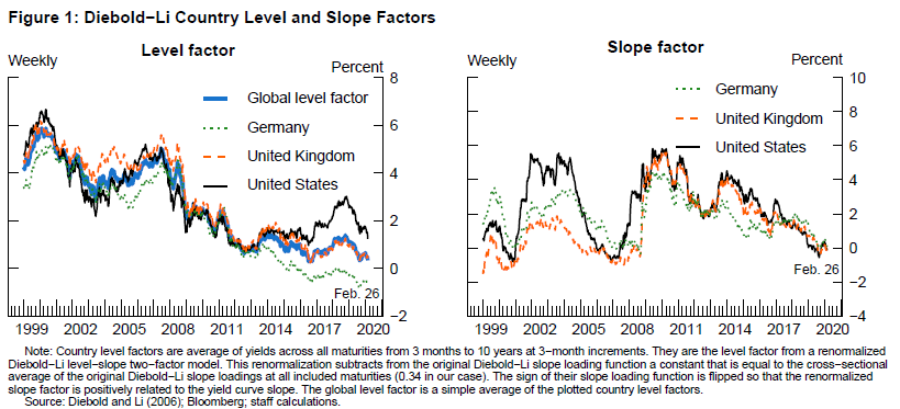 Economic theory suggests at least two reasons why the factors embedded in sovereign yield curves may be correlated across countries. First, this correlation will be present if the underlying macro fundamentals—for example, productivity growth, saving–investment imbalances, and longer-term inflation expectations—that drive the factors are correlated across countries.2 Second, as is emphasized in Clarida (2019c) and Obstfeld (2020), this correlation will also be present if countries are tightly financially integrated even if fundamentals themselves are independent across countries.3