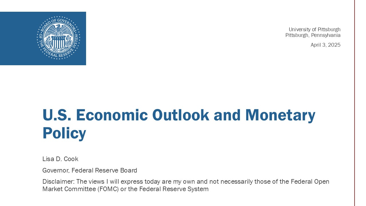 Thank you, Dr. Ripoll. It is wonderful to be here at the University of Pittsburgh. I am honored to deliver the 2025 McKay Lecture in memory of Dr. Marion McKay, who led the economics department here for more than 30 years. I am especially humbled to have this opportunity, given the many significant contributors to the field of economics who have spoken in this series, including David Autor, Claudia Goldin, Bob Lucas, and Joe Stiglitz.1