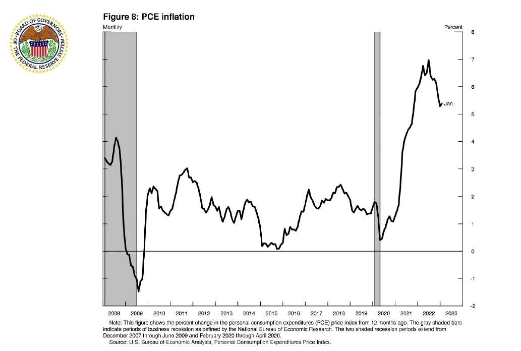 A key question is how much the tightening of financial conditions since late 2021 has contributed to reducing aggregate demand and inflationary pressures. In figure 8, you can see that inflation, measured using the personal consumption expenditures price index, has started to come down. Some of the disinflation, or reduction in the inflation rate, is due to monetary policy tightening, and some of this disinflation is due to other factors, such as supply chain bottlenecks easing and falling energy prices. Chair Powell and other colleagues in the Federal Reserve System have pointed out that monetary policy affects the economy and inflation with long, variable, and highly uncertain lags, and we are still learning about the full effect of our tightening thus far.22