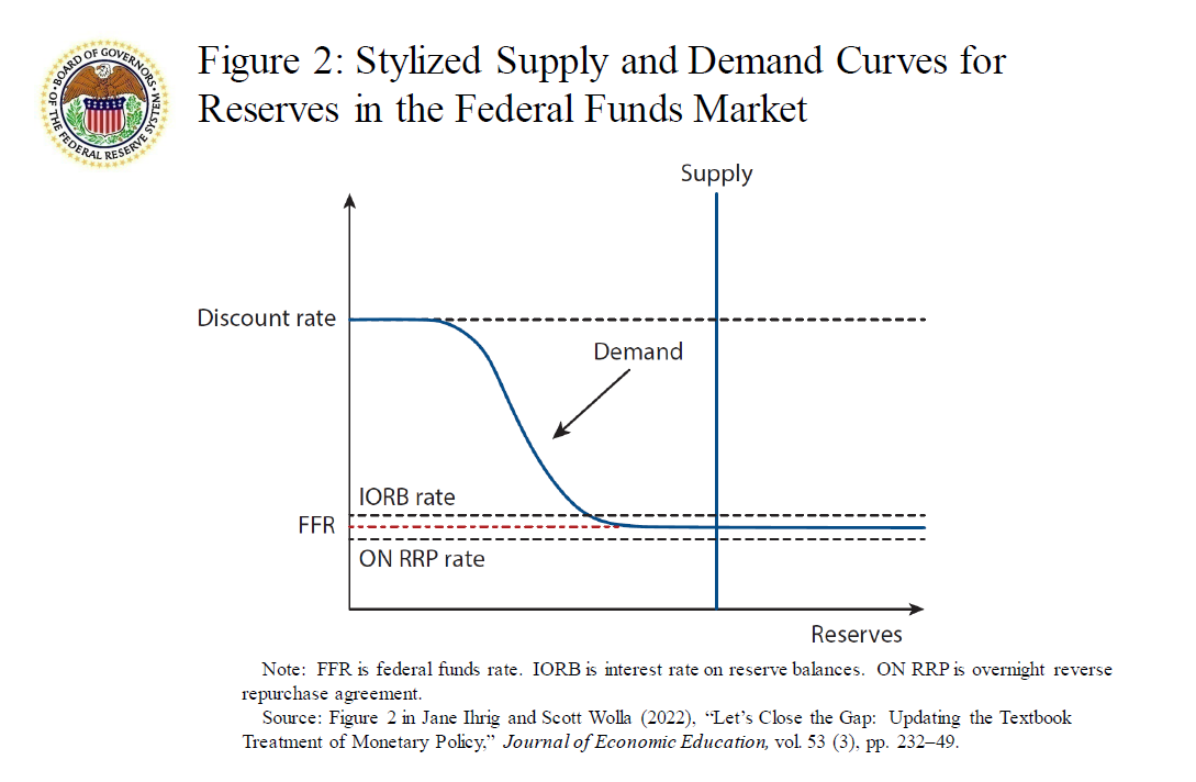 16. In January 2019, the Fed announced that "the Committee intends to continue to implement monetary policy in a regime in which an ample supply of reserves ensures that control over the level of the federal funds rate and other short-term interest rates is exercised primarily through the setting of the Federal Reserve's administered rates, and in which active management of the supply of reserves is not required." See Board of Governors (2019a, para 2). Afonso and others (2022), among others, investigate how to identify ample-reserves regimes. Return to text