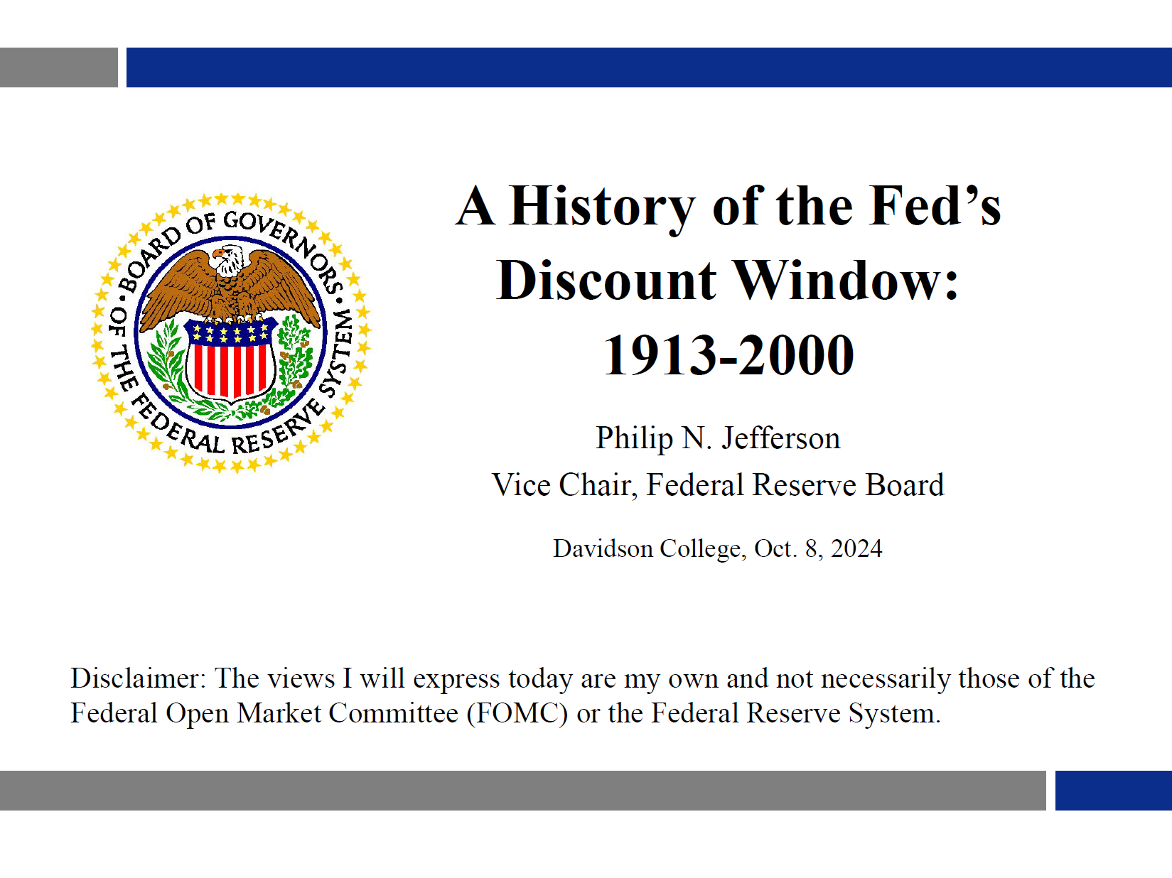 Before closing, I'd like to return to where I began. Understanding the history of the discount window is important as we consider ways to ensure it continues to serve effectively in its critical role in providing liquidity to the banking system as the economy and financial system evolve. One way to ensure it continues to serve effectively is to collect feedback from the public. Slide 10 provides some touch points on the Board's request for information document. The request for information seeks feedback from the public on a range of operational practices for the discount window and intraday credit, including the collection of legal documents; the process for pledging and withdrawing collateral; the process for requesting, receiving and repaying discount window advances; the extension of intraday credit; and Reserve Bank communications practices. My colleagues and I are looking forward to this feedback to inform potential future enhancements to discount window operations. The period for responding to our request for information ends on December 9, 2024.