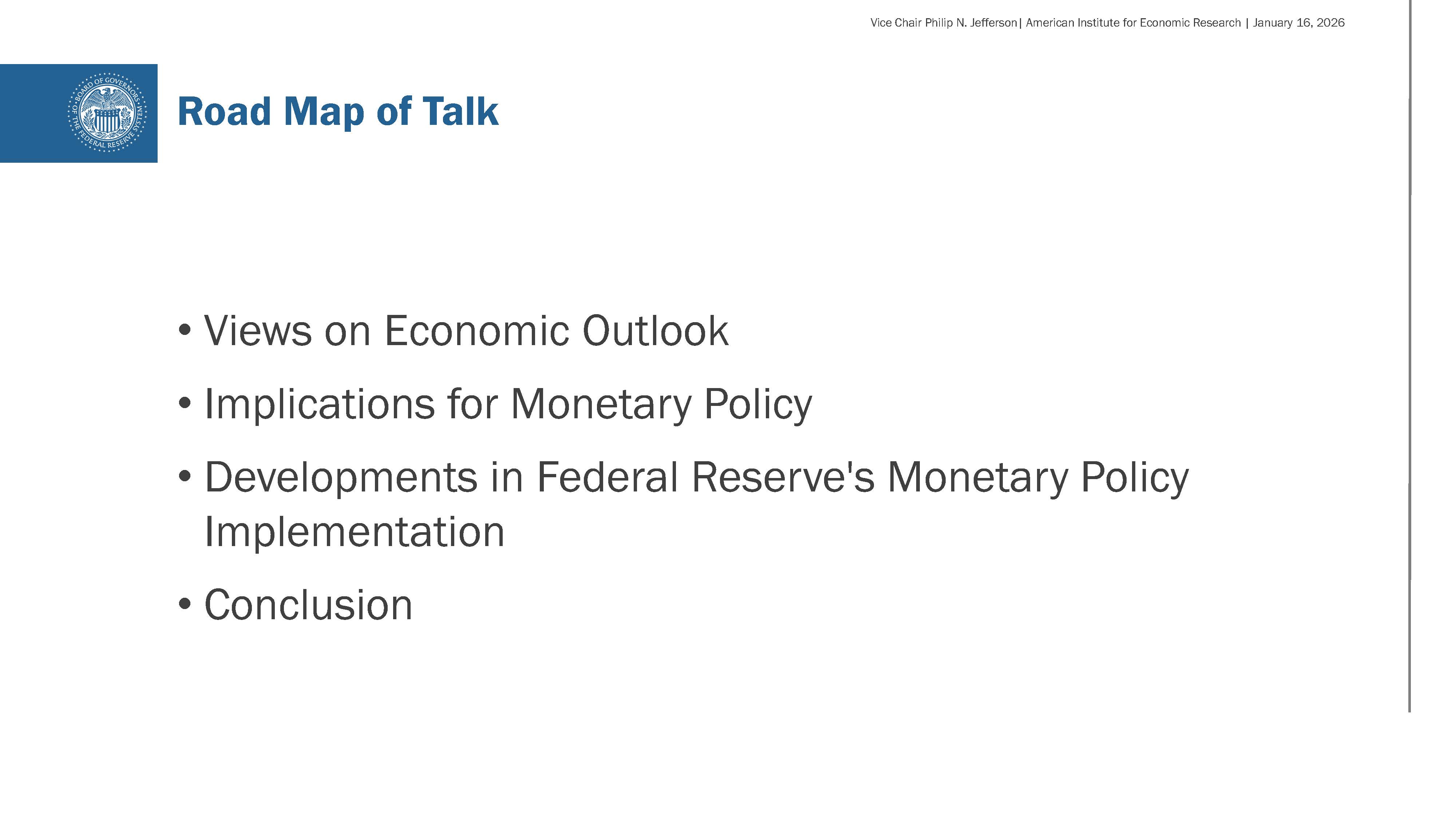 Today, I will start by sharing my outlook for the economy at the start of 2026. Next, I will discuss the implications of that outlook for the path of monetary policy. And, finally, I will discuss some recent developments in monetary policy implementation, which I know is of interest to many of you in this room. As a reminder, these views are my own and are not necessarily those of my colleagues.