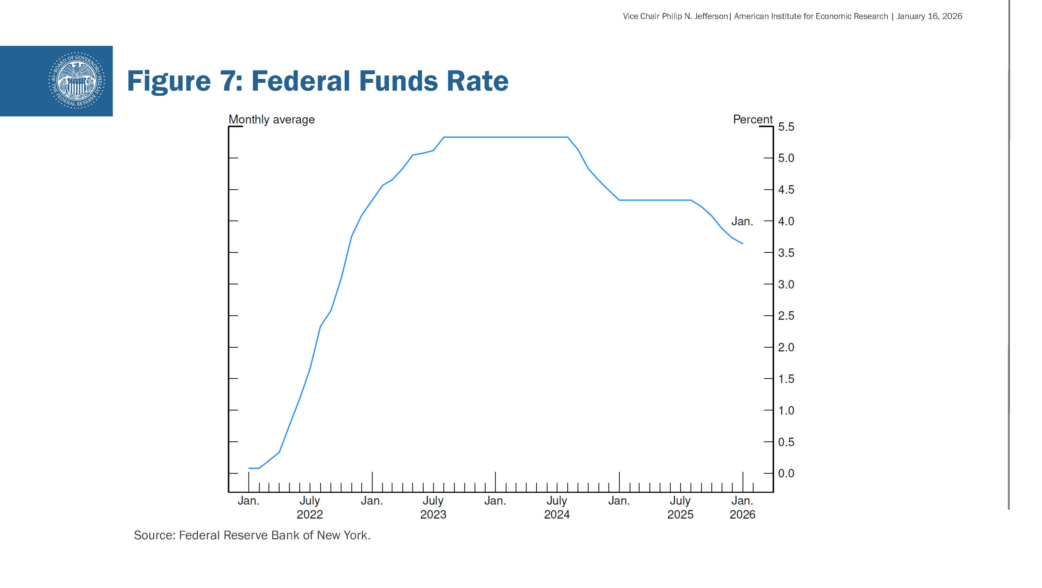 As shown in figure 7, since the middle of 2024, the Committee has reduced the policy rate by 1.75 percentage points. In my view, those moves have brought the federal funds rate into a range consistent with the neutral rate — a rate that neither stimulates nor restricts economic activity. I look forward to our upcoming policy meeting, which will be held in less than two weeks. While I do not want to prejudge the decision that will take place there, in my view, the current policy stance leaves us well positioned to determine the extent and timing of additional adjustments to our policy rate based on the incoming data, the evolving outlook, and the balance of risks.