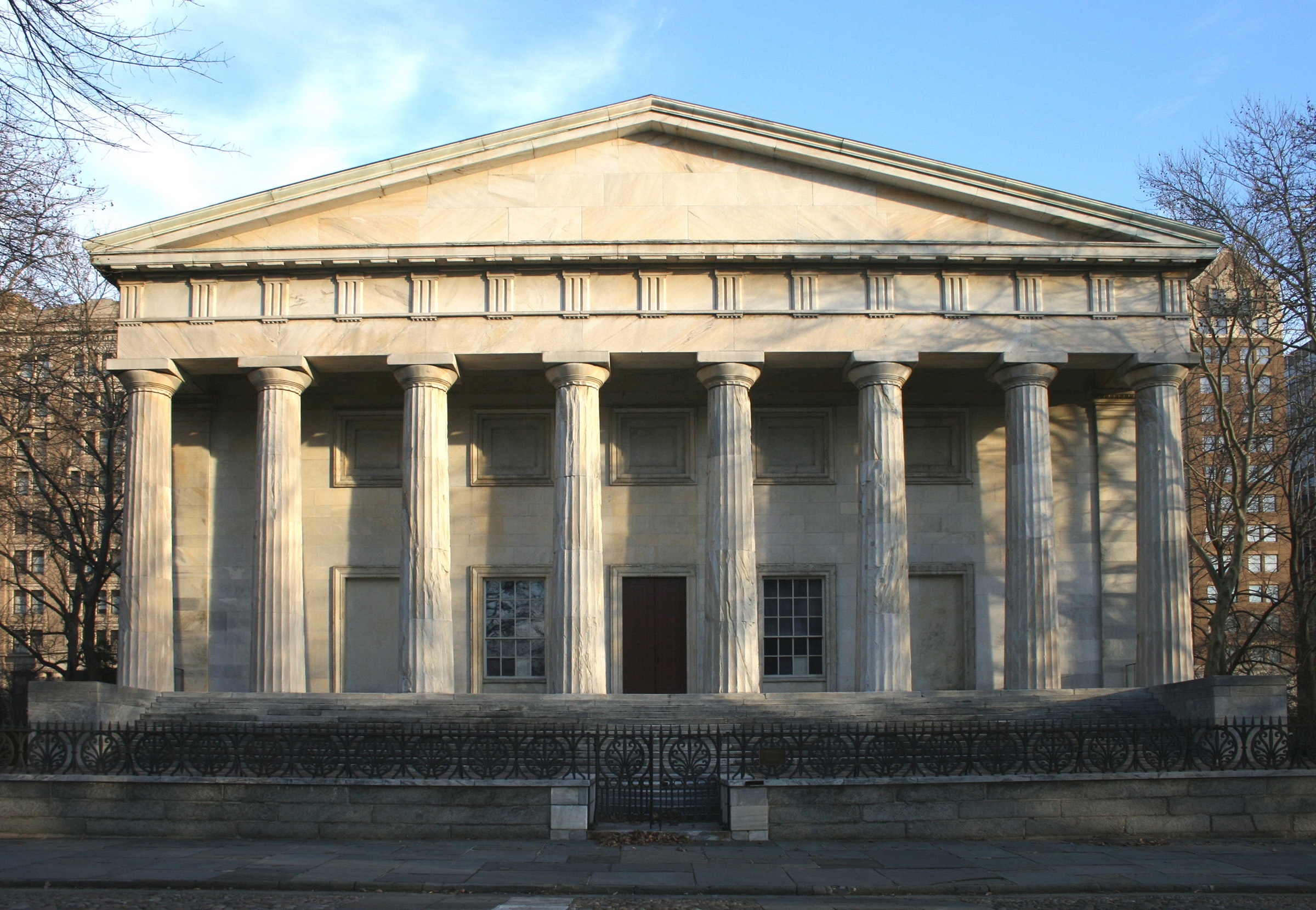 Photo of the building of the second Bank of the United States in Philadelphia.