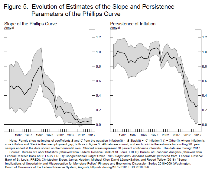 Pfajfar, Damjan, and John M. Roberts (2018). "The Role of Expectations in Changed Inflation Dynamics (PDF)," Finance and Economics Discussion Series 2018-062. Washington: Board of Governors of the Federal Reserve System, August.