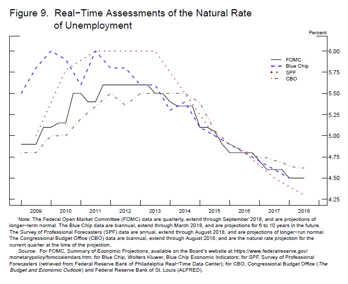 6. This estimate is the CBO's current assessment of what the natural rate was at each period in the sample, not a measure of the natural rate as perceived in real time. I discuss the importance of this distinction in Powell (2018). Return to text