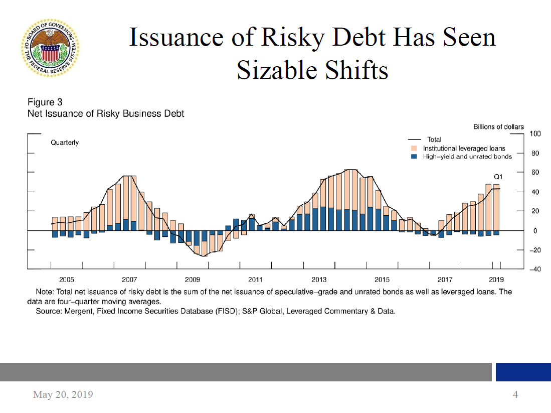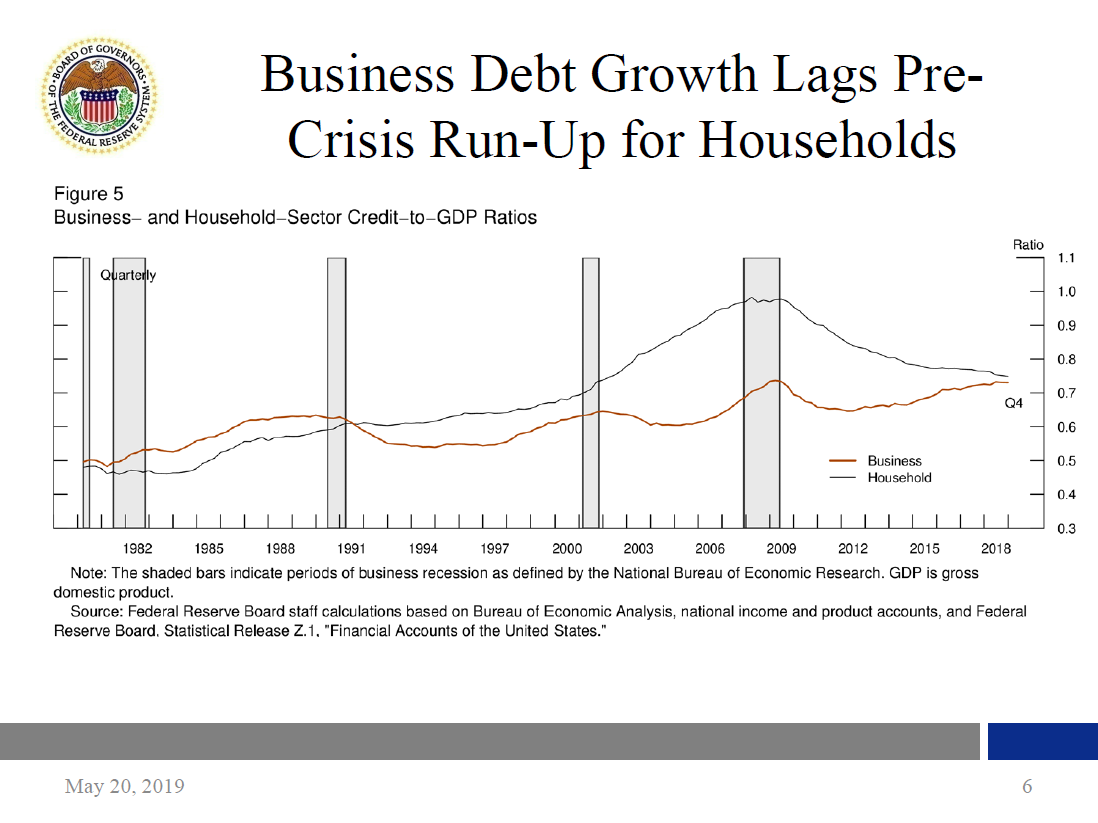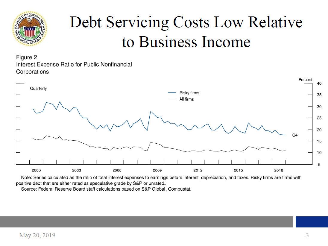 What else are we watching for? Business debt growth has moderated somewhat since early 2018, but this might be just a pause. Another sharp increase in debt, unless supported by strong fundamentals, could increase vulnerabilities appreciably. Businesses, investors, and lenders need to focus on these vulnerabilities—as will the Federal Reserve.