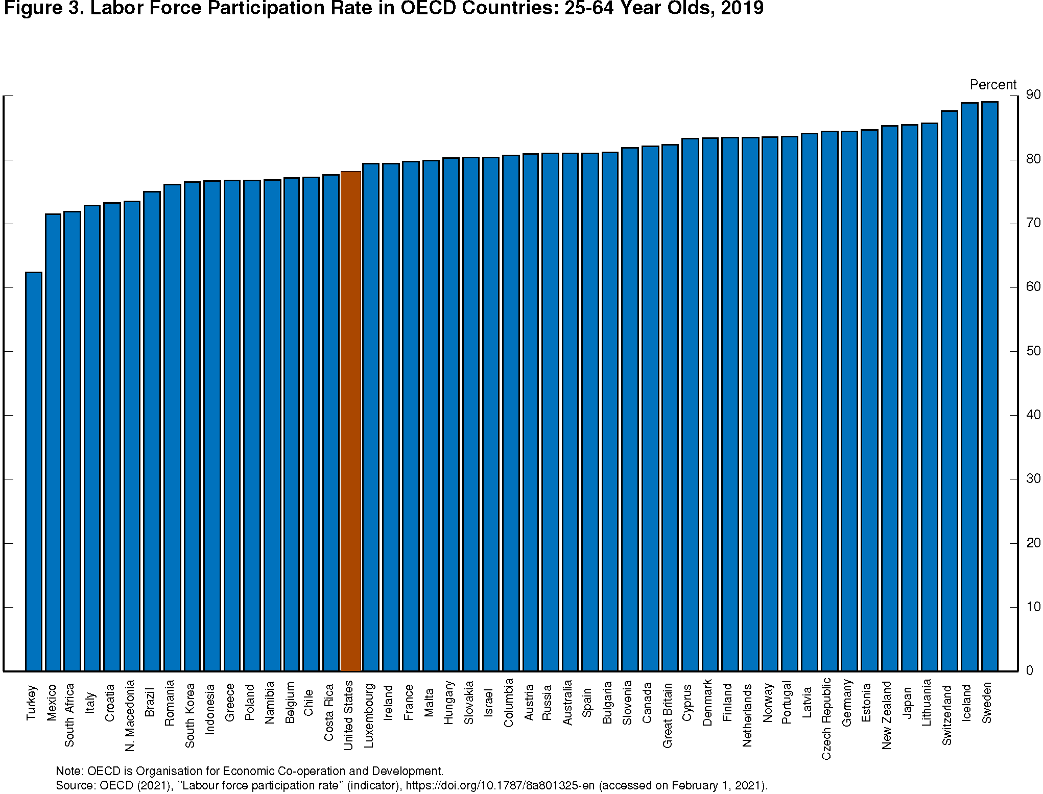 3. For data comparing labor force participation rates across countries, see Organisation for Economic Co-operation and Development (2021), "Labour Force Participation Rate" (indicator), OECD Data. Return to text