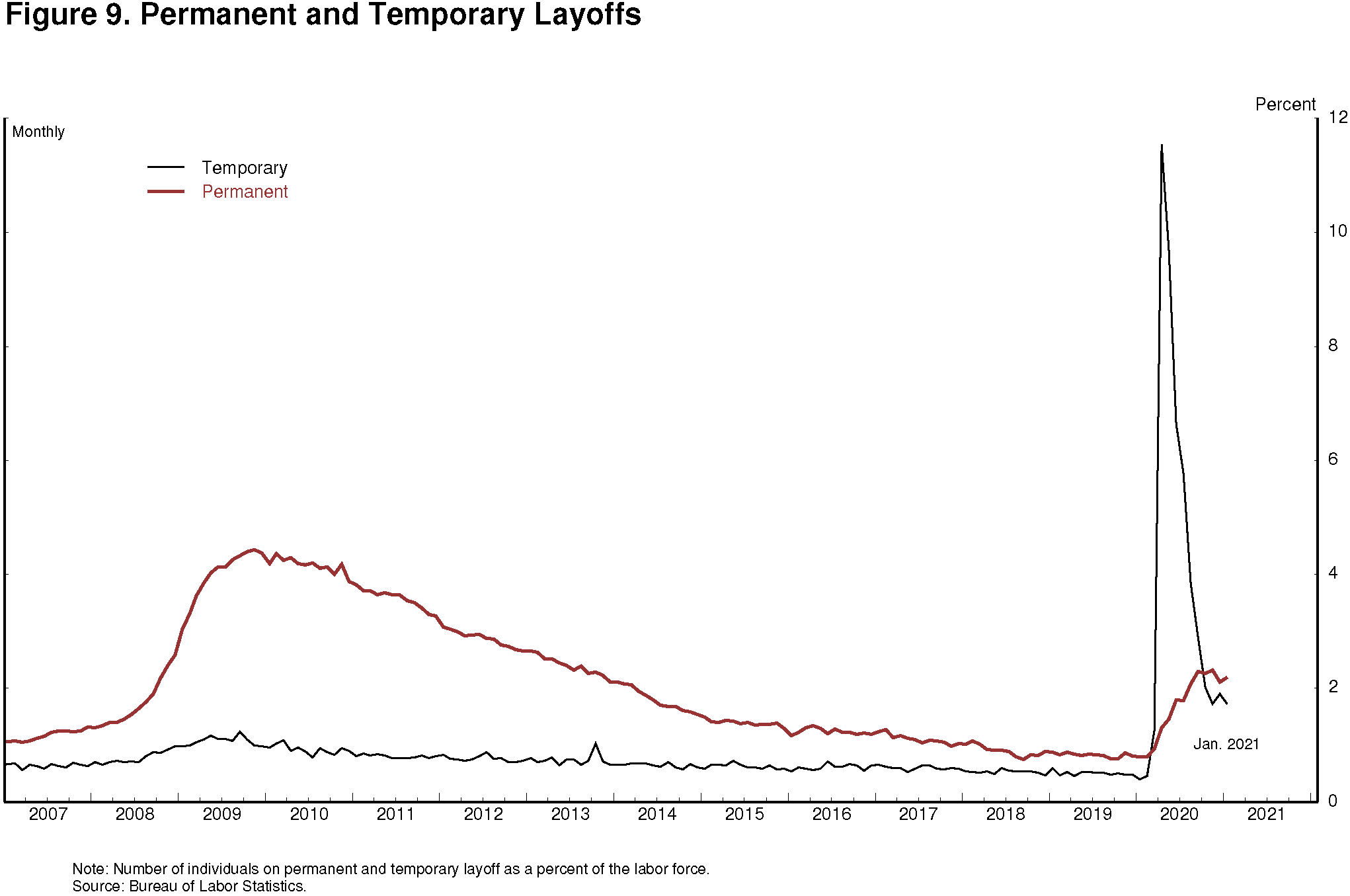 7. The Bureau of Labor Statistics defines a job loss as temporary if the affected worker has been given a date to return to work or expects to be recalled to their former job within six months. Return to text