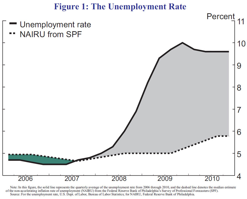 To understand the rationale for our asset purchase program, it is helpful to review the evolution of macroeconomic conditions over the past several years. The National Bureau of Economic Research has dated the recession as having begun in December 2007, but the pace of economic contraction accelerated in the wake of the Lehman Brothers collapse in September 2008 and the ensuing disruption to global financial markets. As shown in figure 1, the unemployment rate rose from around 5 percent in the spring of 2008 to about 10 percent by the autumn of 2009 and has stayed well above 9 percent since then. Most observers, including myself, judge this level of unemployment to be much higher than levels consistent with full employment and stable inflation. For example, in a recent Survey of Professional Forecasters conducted by the Federal Reserve Bank of Philadelphia, the median estimate of the current level of structural unemployment--often referred to as the non-accelerating inflation rate of unemployment (NAIRU)--stood at about 5-3/4 percent, implying that the unemployment gap is nearly 4 percentage points.