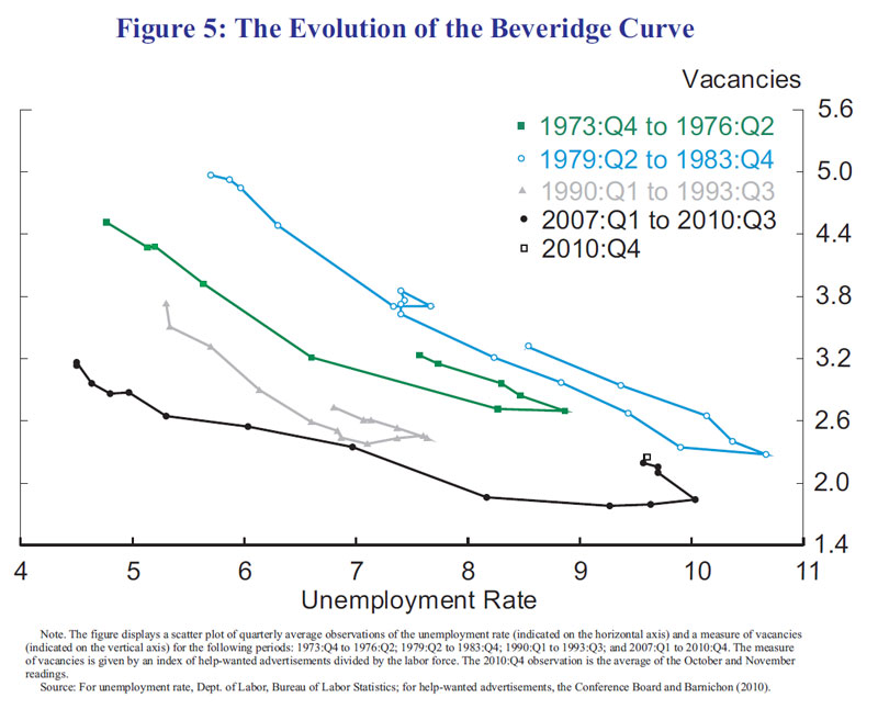 Barnichon, Regis, and Andrew Figura (2010). "What Drives Movements in the Unemployment Rate? A Decomposition of the Beveridge Curve (399 KB PDF)," Finance and Economics Discussion Series 2010-148. Washington: Board of Governors of the Federal Reserve System, September.