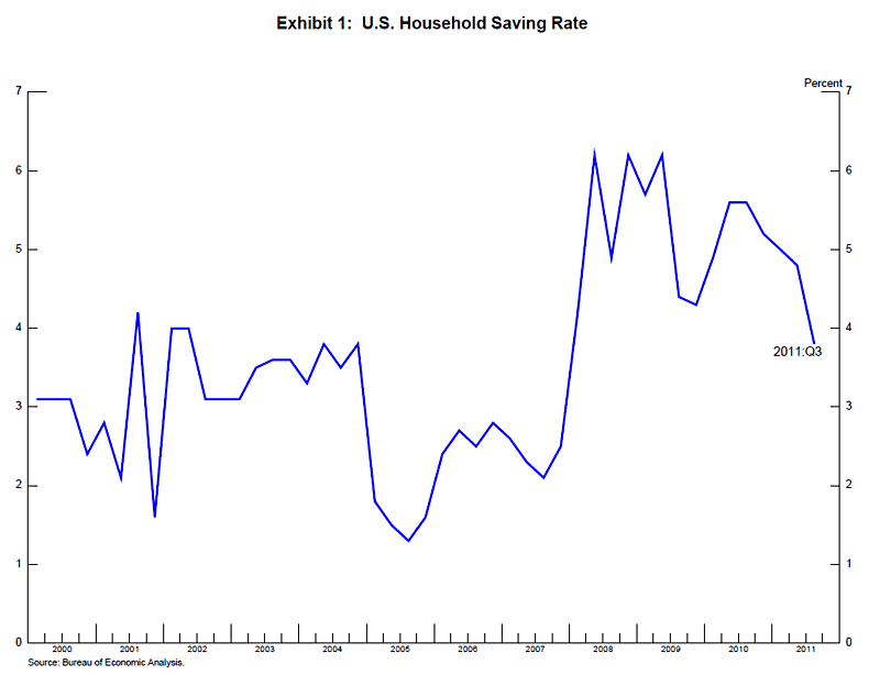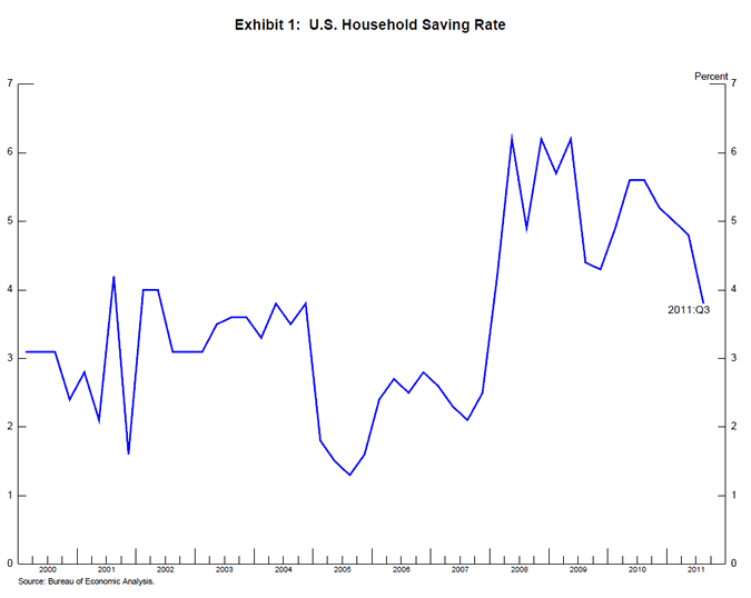 At the onset of the financial crisis, consumer spending contracted sharply and the personal saving rate began a steep ascent. Exhibit 1 shows that the saving rate rose from around 2-1/2 percent in 2006 to about 5 percent in the first half of this year. It now appears that consumer spending is advancing at a moderate pace. In the pre-crisis years, consumer spending grew rapidly, providing considerable impetus to the expansion. In contrast, over the next few years, consumer spending seems unlikely to serve as one of the main engines of growth. The ratio of household debt-to-income remains exceptionally high, even though over the past few years it has declined slightly from the post-World War II peak reached prior to the crisis. Although households appear to have made some progress in deleveraging, many still face elevated debt burdens and reduced access to credit. Moreover, high levels of unemployment and underemployment, slow gains in wages, and declines in the values of both homes and financial assets have weighed on household spending and diminished the ability of households to tap home equity in emergencies or for other purposes. Consumer sentiment dropped markedly over the summer and remains quite depressed, apparently reflecting households' concerns about the broader economy as well as their own financial situations.