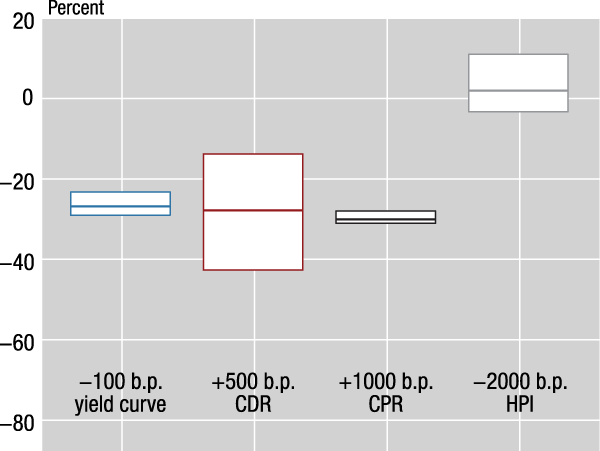 Note: The labels on the bars represent the size of the change in the conditional prepayment rate in each of the stress scenarios.