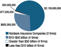 In 2015, the Board supervised insurance firms representing approximately $3.1 trillion in total assets, illustrated in figure A. The Board supervised three nonbank financial companies with significant insurance activities--American International Group, Inc.; Prudential Financial, Inc.; and MetLife, Inc.1 These companies have approximately $2.1 trillion in combined total assets. In addition, there are 12 insurance SLHCs (ISLHCs) with approximately $989 billion in combined total assets. For most of these ISLHCs, subsidiary savings associations account for less than 20 percent of their combined assets.