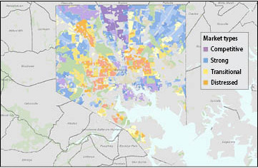 One of the 2008 MVA's key contributions to Baltimore's strategy development was the recognition of the spatial arrangement of market types: